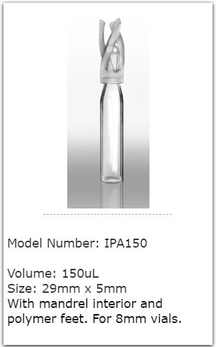 Miếng chèn Dung lượng 150uL, với chân đế và chân polymer, dùng cho lọ đựng mẫu 8mm. |