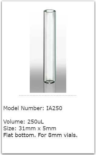 Miếng chèn Dung lượng 250uL, đế bằng, dùng cho lọ đựng mẫu 8mm.